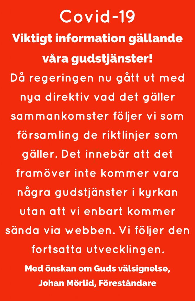 Just nu sänder vi enbart gudstjänster via vår webtv och